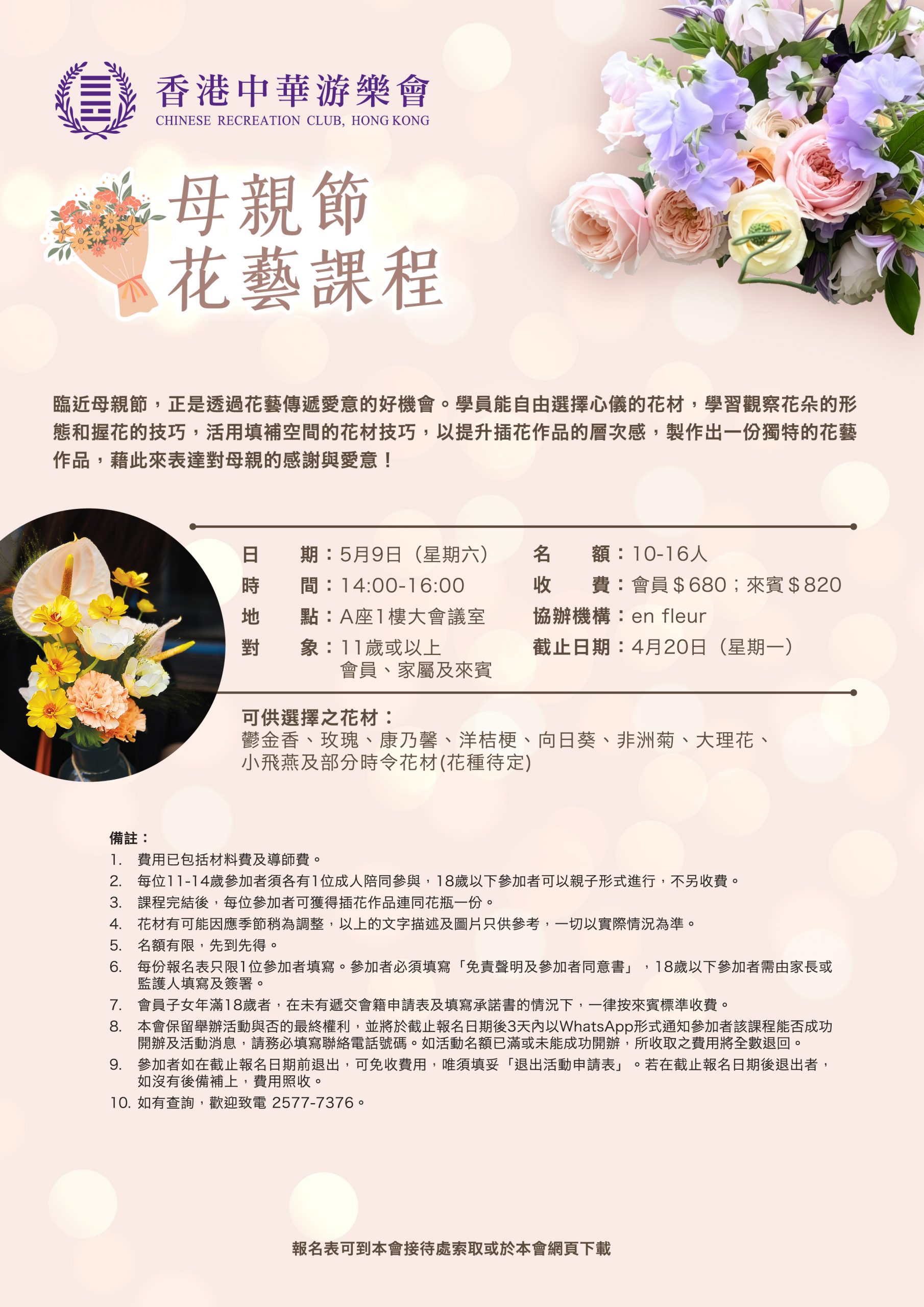 Download Mother’s Day Flower Workshop Application Form